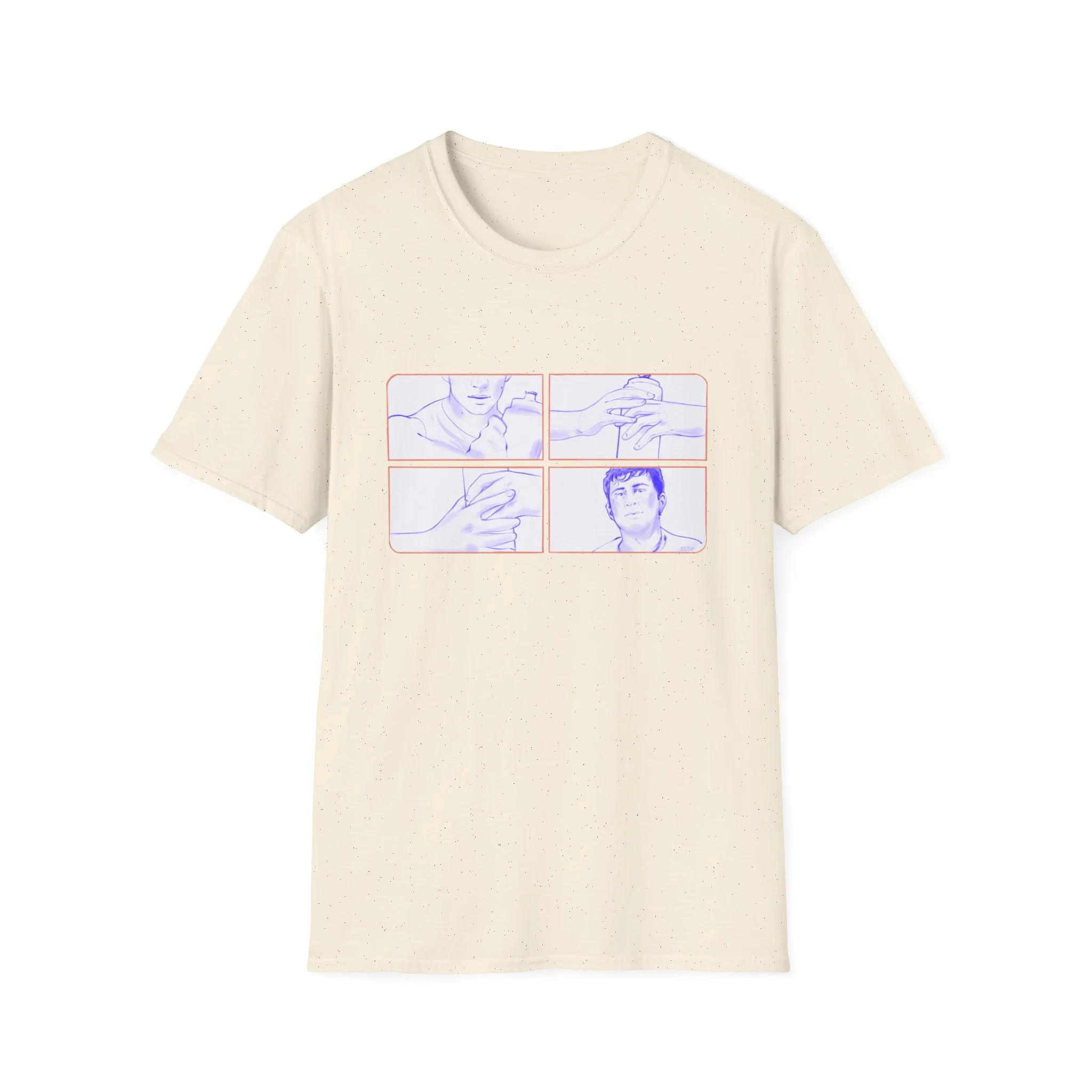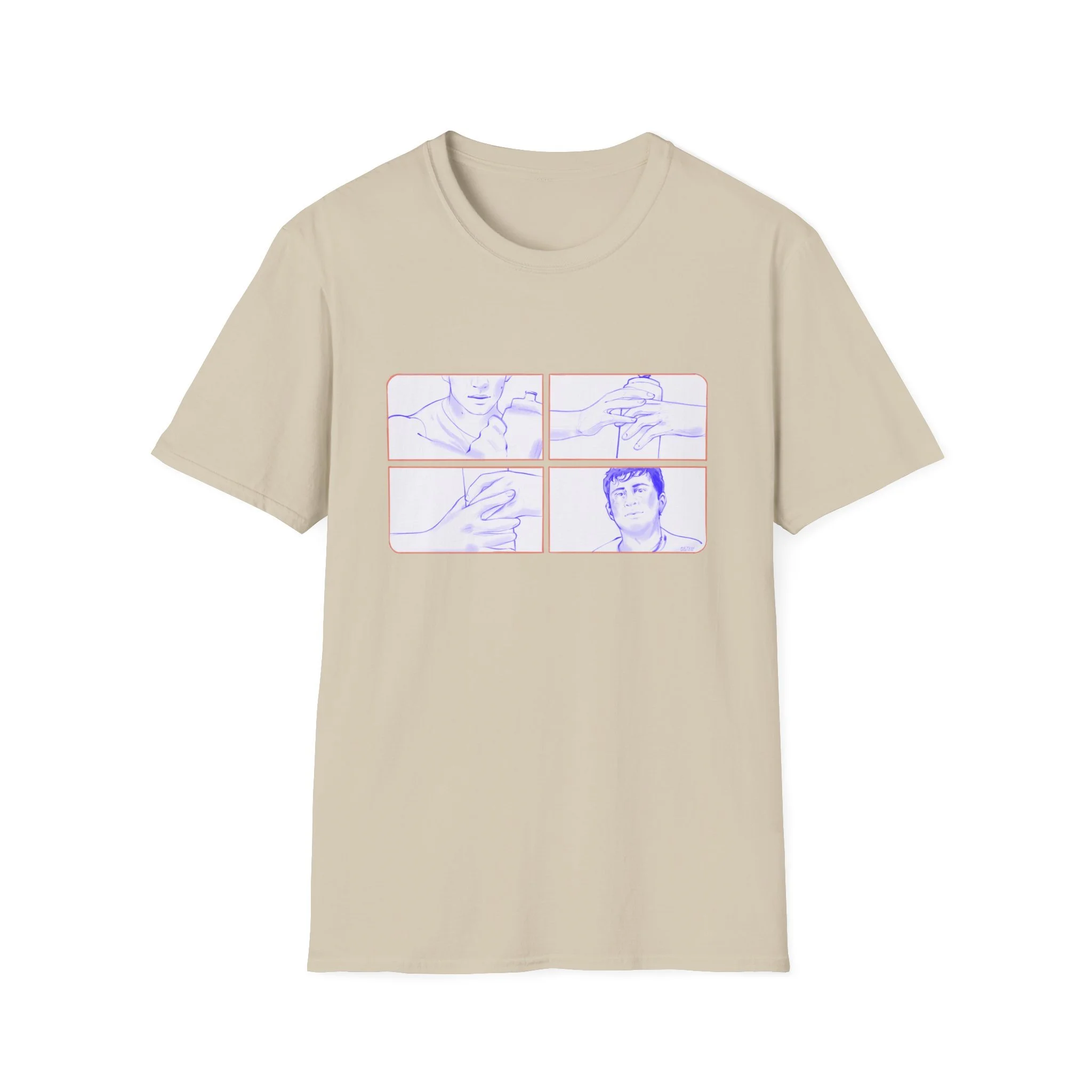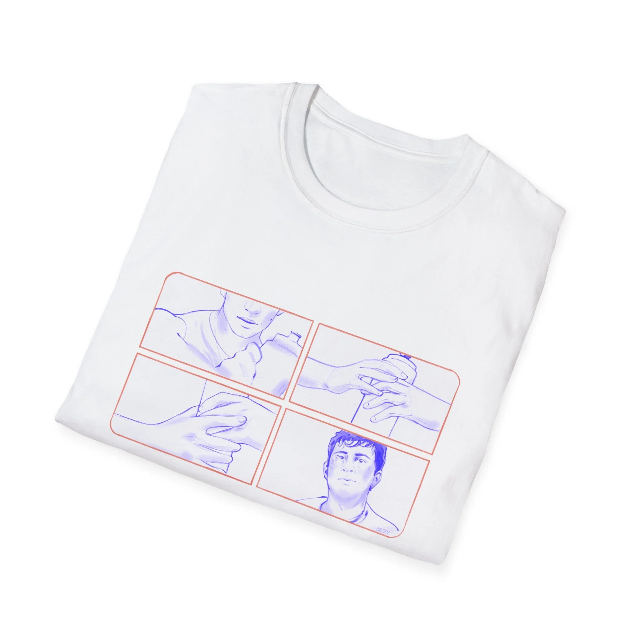 The looks are everything here. A double sided Heated Rivalry fan art illustration of the iconic water bottle scene by me! On a 100% cotton soft tee. Bound to make everyone at the gym, on the rink, or at brunch curious.